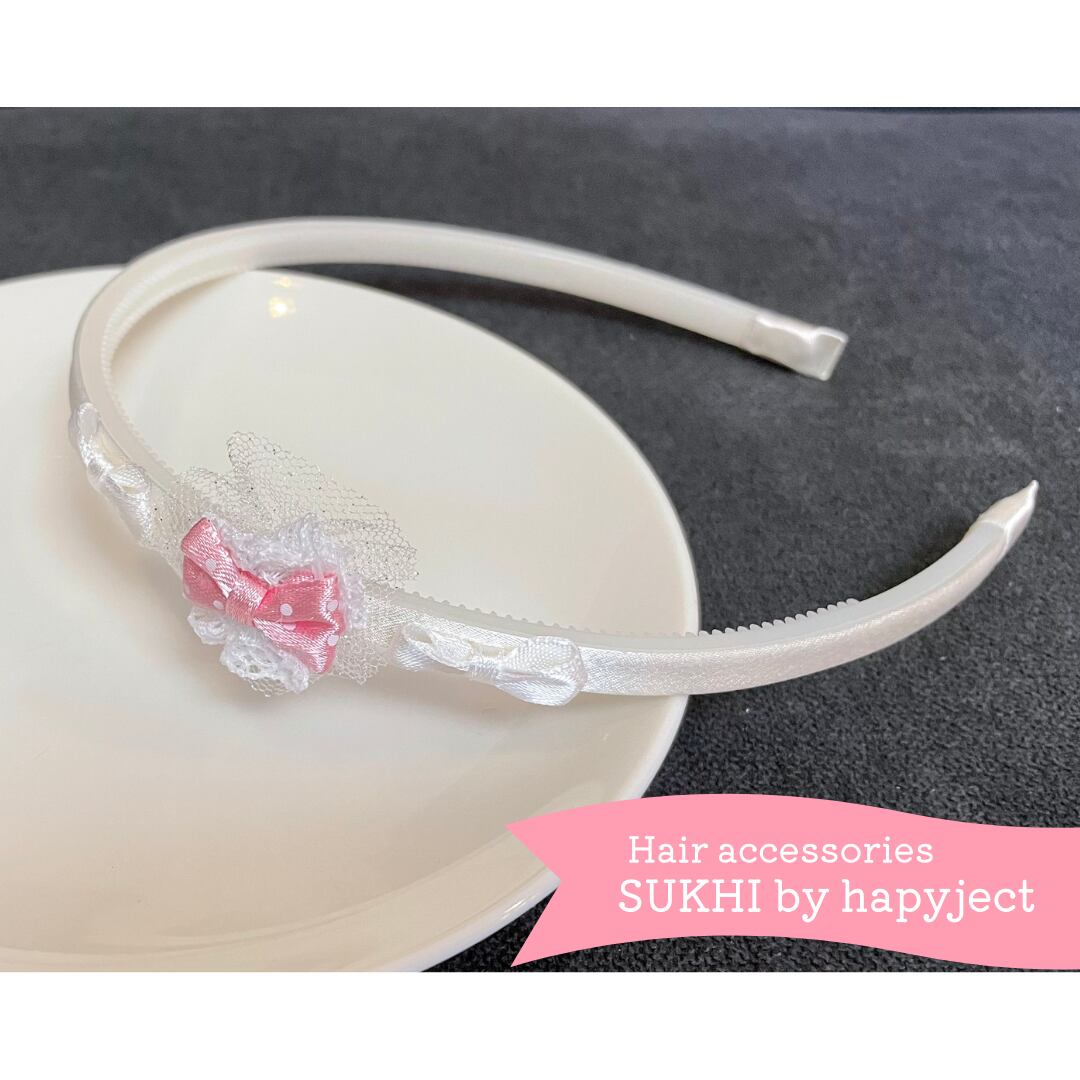 中央のリボンがアクセントとなっており、チュールとレースの上にドット柄のリボンがのっているお洒落なデザイン☆