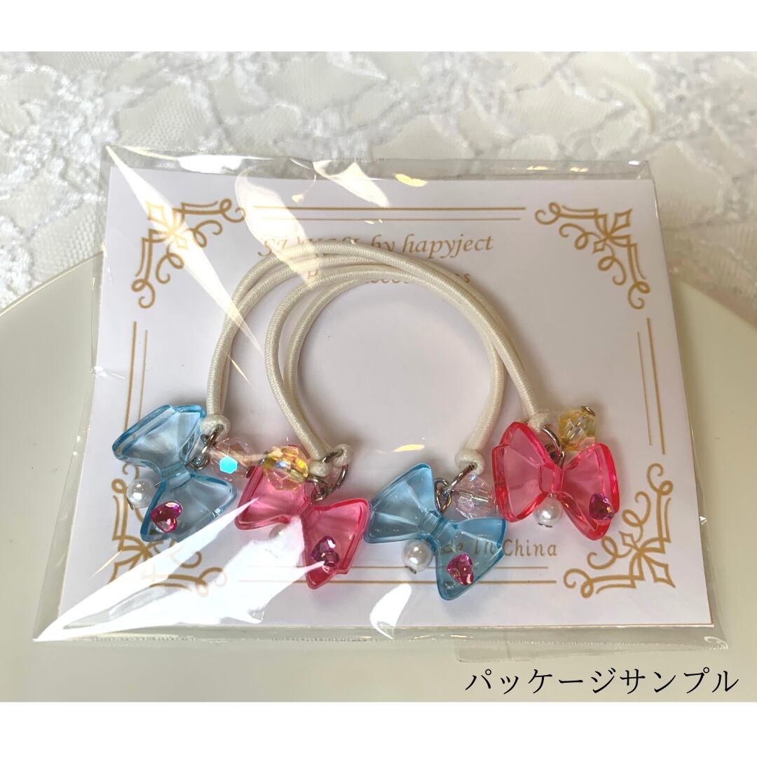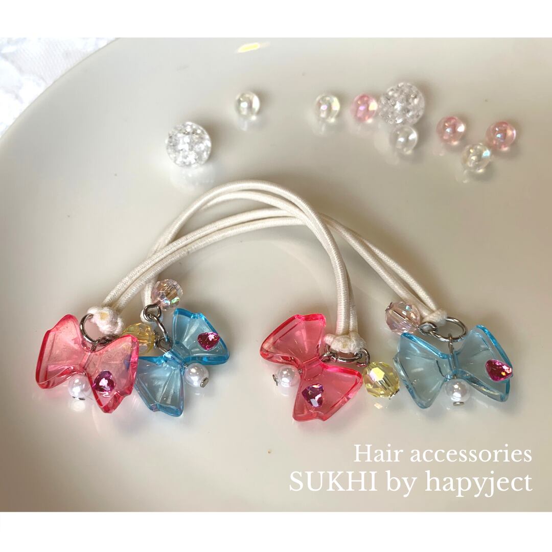 アクリルジャラリボンヘアゴム2個セット(pink/blue)