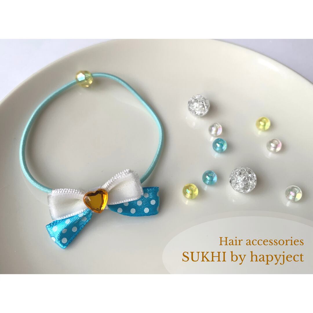 ハートドットダブルリボンヘアゴム(blue) | SUKHI by hapyject