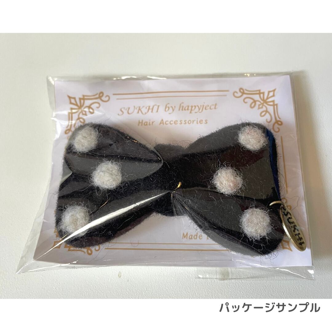 SUKHIチャーム付き 羊毛ドットリボンピンブローチ大(black)