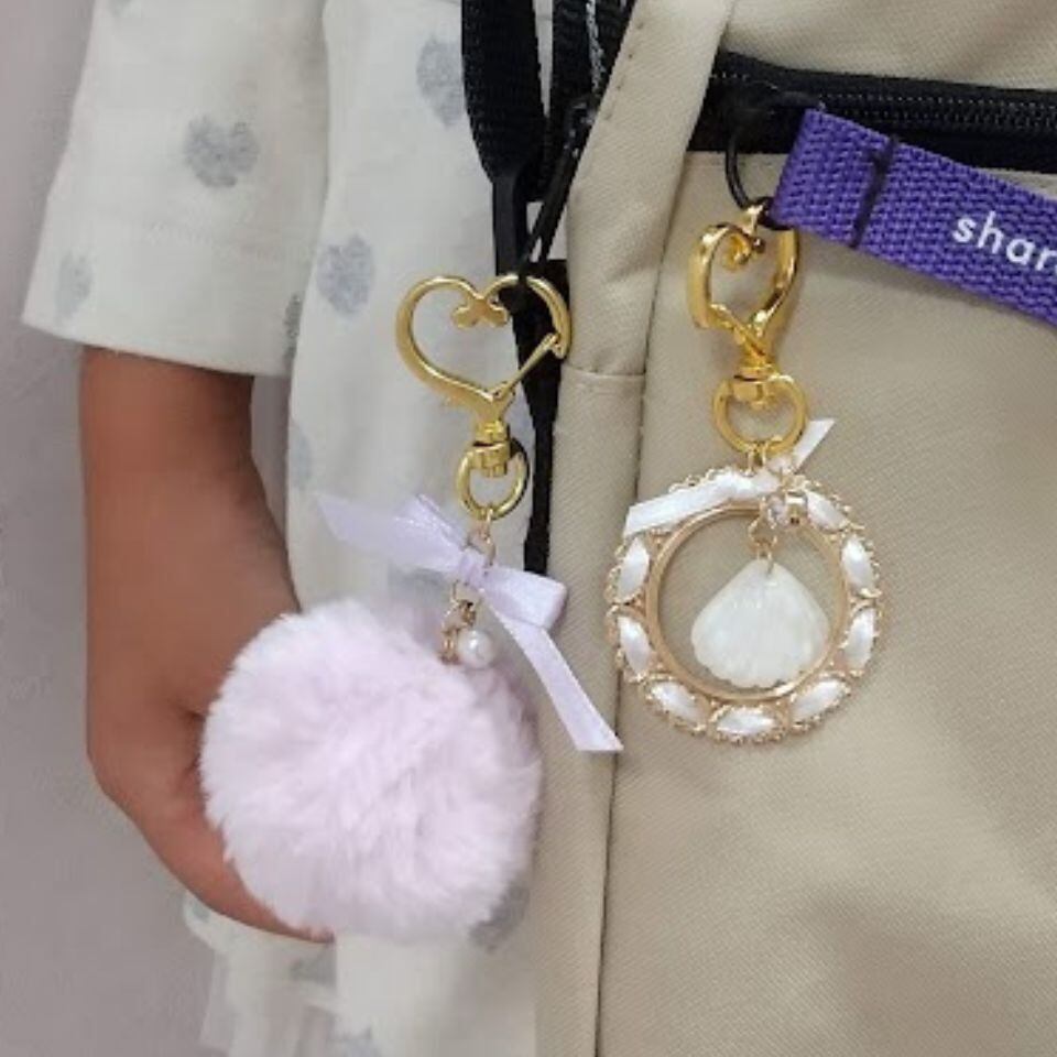 金具部分がハート型でとっても可愛らしく、お子様でもとめやすい仕様なのがオススメポイント!おカバン等につけるだけで可愛さ倍増しますよ♡