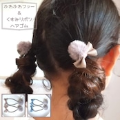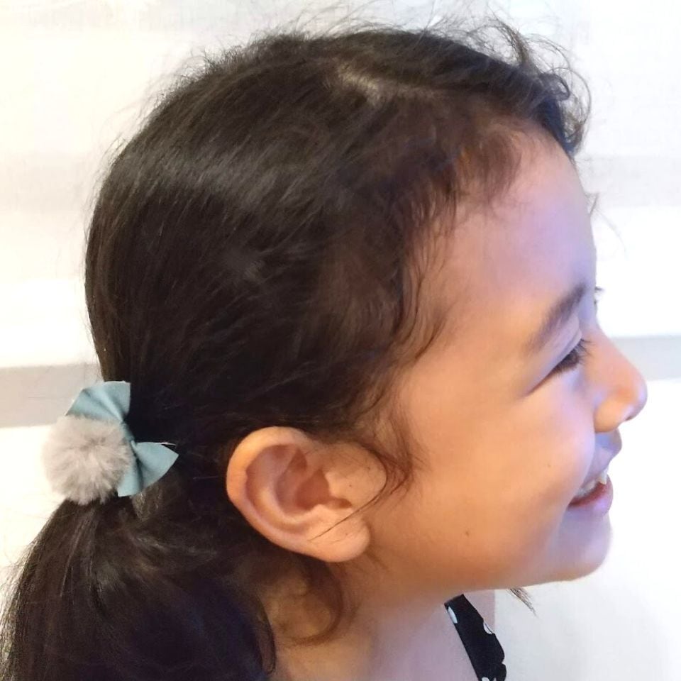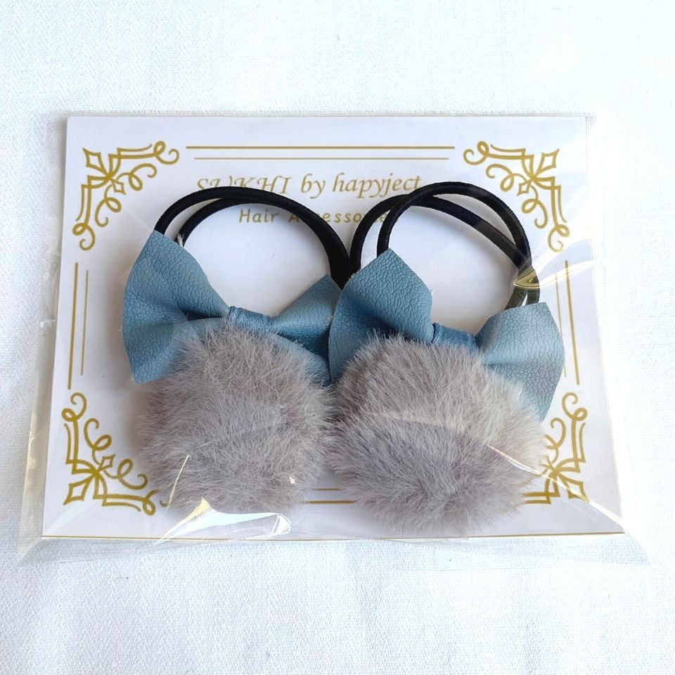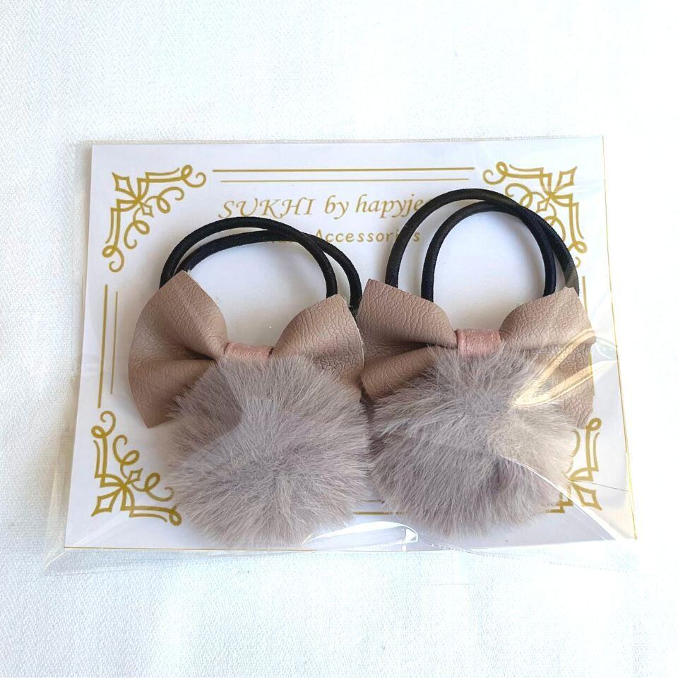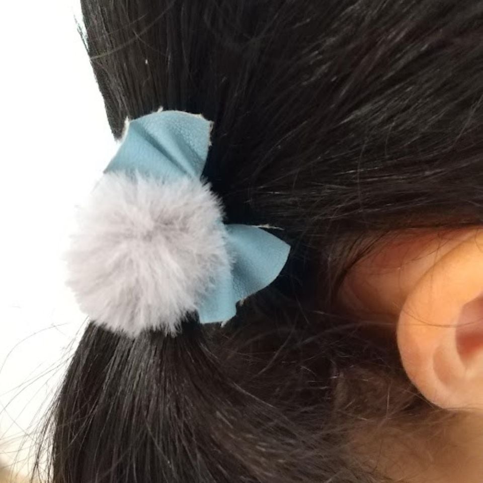今流行りののくすみカラーのリボンとファーのポンポンを組み合わせました。