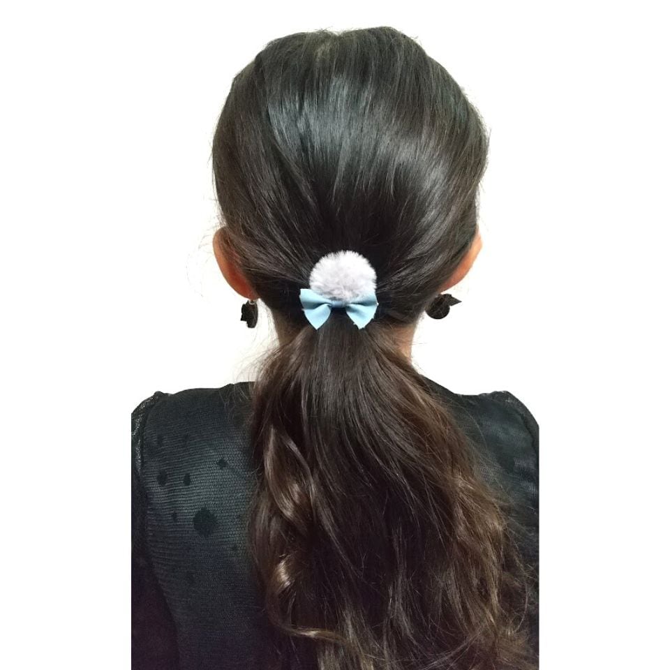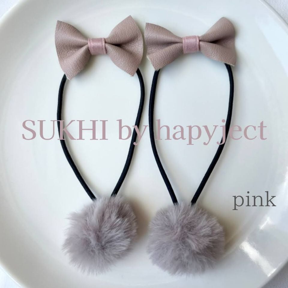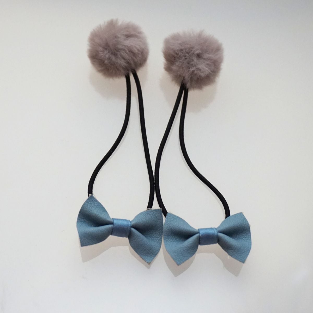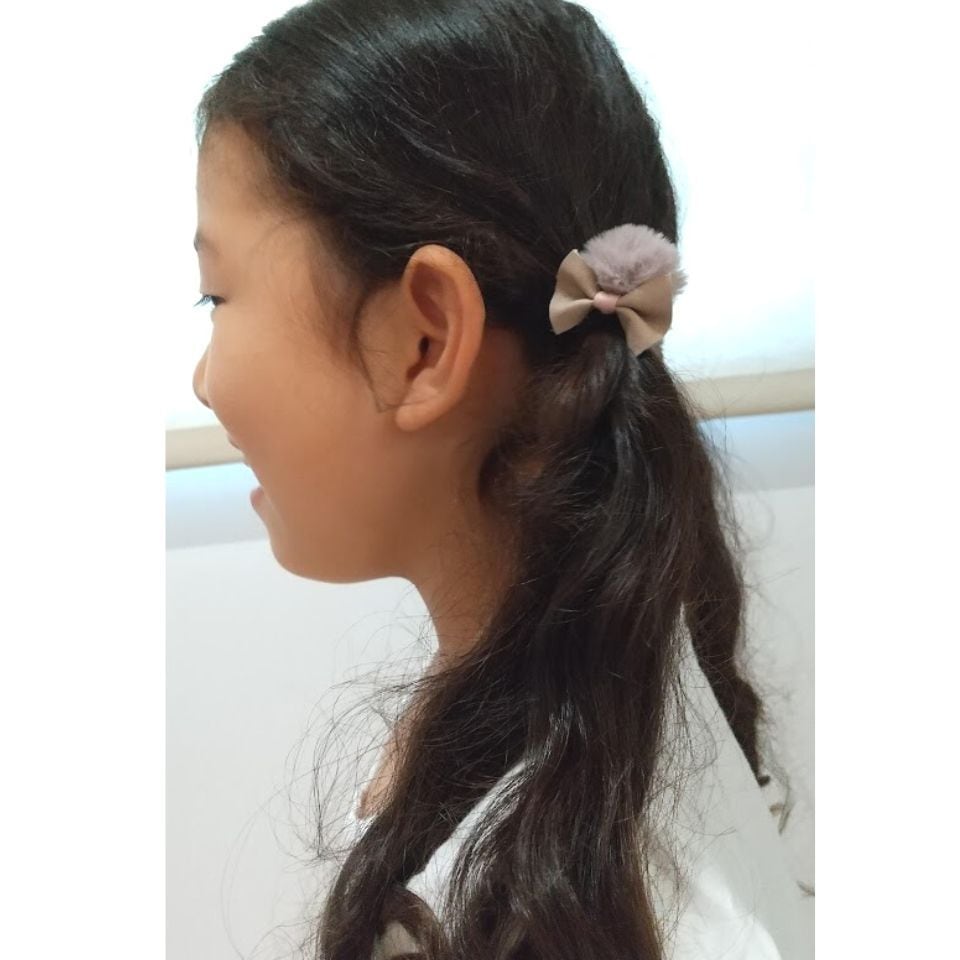 今流行りののくすみカラーのリボンとファーのポンポンを組み合わせました。