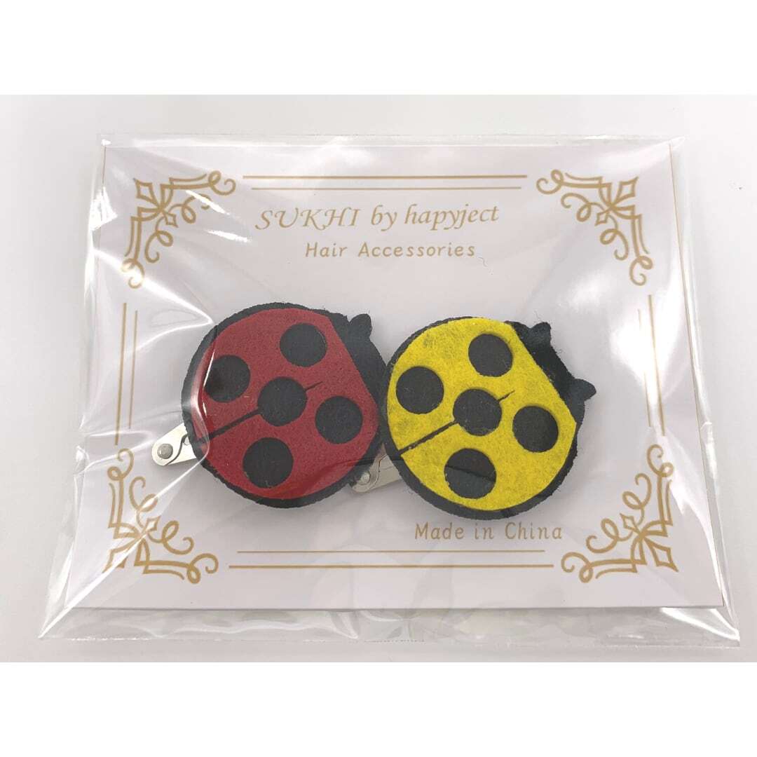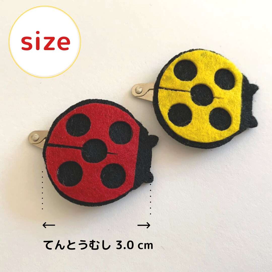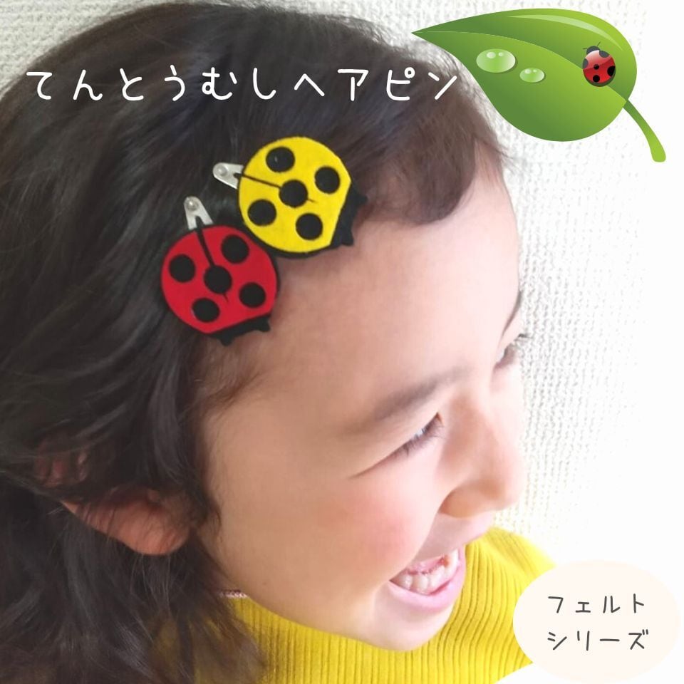フェルト生地で仕上げた、てんとうむし(赤・黄)のヘアピンです。