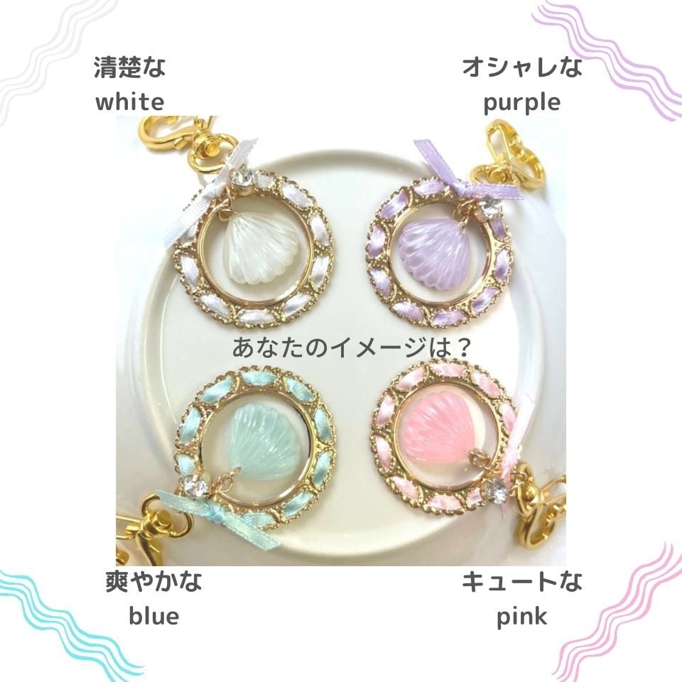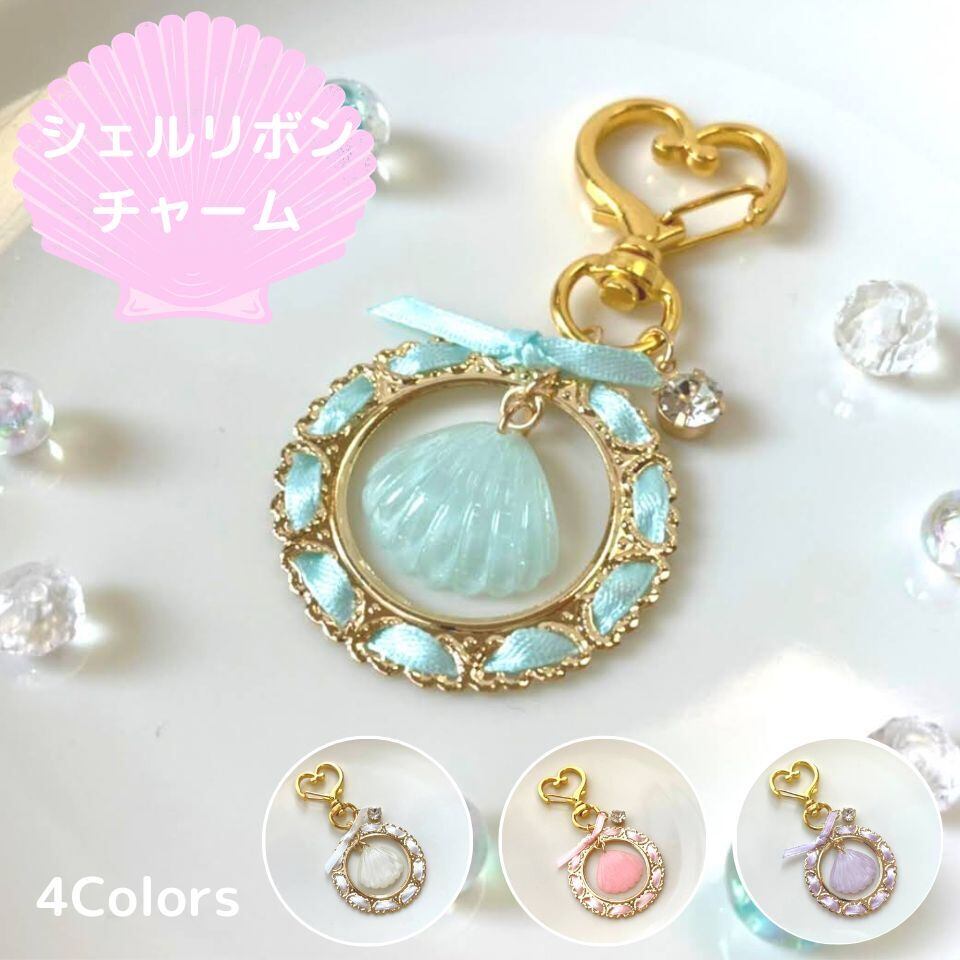 リボン、貝殻、キラキラストーン、金色に輝くチャーム、、、そんな乙女心をくすぐる要素が満載のデザインです。